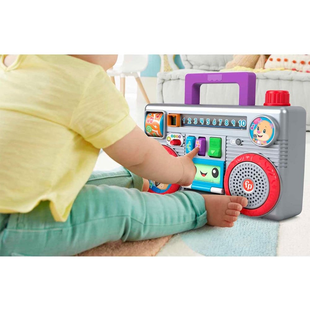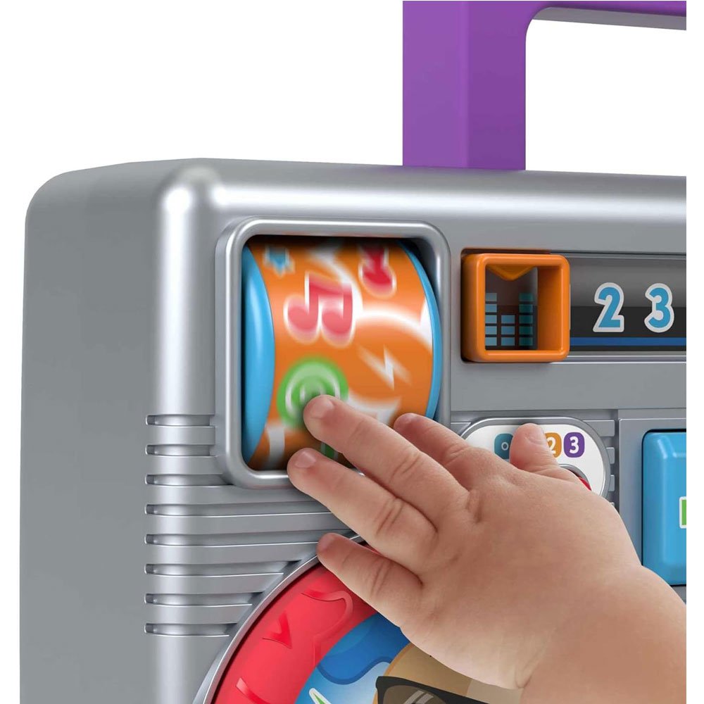 El Radio cassette Fisher-Price-GYC00 es un juguete nostálgico que combina la apariencia clásica de los antiguos boomboxes con la funcionalidad educativa moderna. Desde el momento en que lo vi, pensé que este juguete sería perfecto para enseñar a los niños conceptos básicos de aprendizaje como los números, las letras y las formas. Además, está diseñado para niños pequeños, ofreciendo una experiencia interactiva a través de pequeñas canciones y sonidos coloridos.